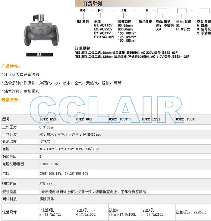 详细信息 BSE1-65F,BSE2-65F,BSE7-80F,BSE11-80F,BSE1-100F,BSE2-125F,BSE1-150F,电磁阀