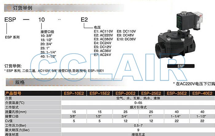 ESP-10E1,ESP-15E1,ESP-20E1,ESP-25E2,ESP-35E2,ESP-40E2,电磁阀