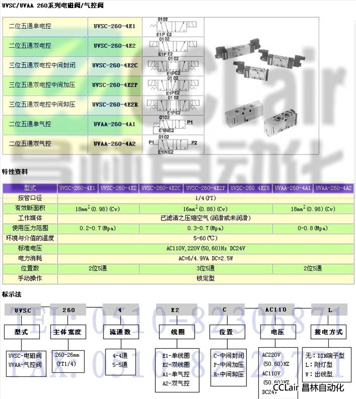 详细信息 UVSC-260-4E1,UVSC-260-4E2,UVSC-260-4E2C,UVSC-260-4E2P,UVSC-260 4E2R,电磁阀