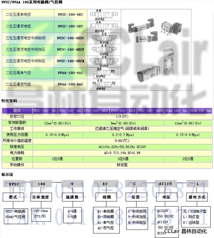 详细信息 UVSC-180-4E1,UVSC-180-4E2,UVSC-180-4E2C,UVSC-180-4E2P,UVSC-180-4E2R,电磁阀