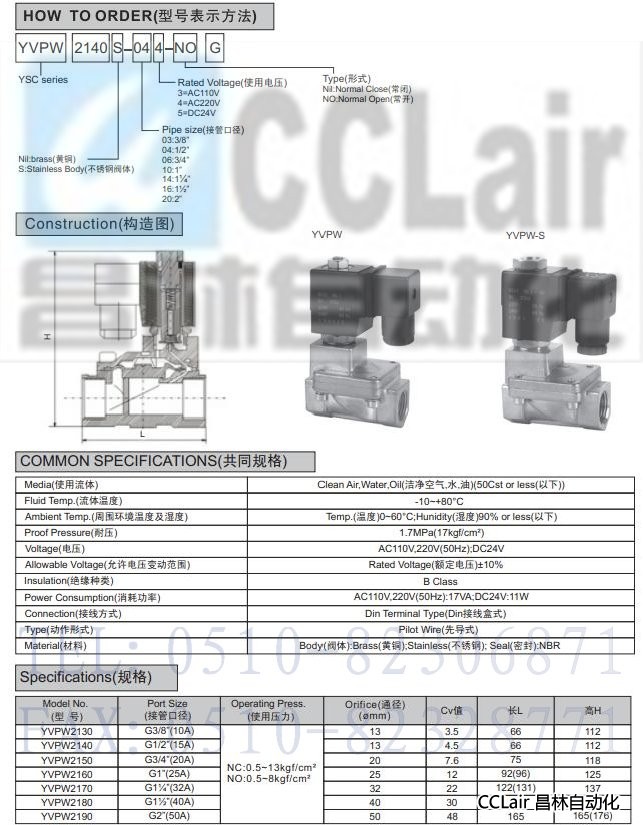 YVPW2130,YVPW2140,YVPW2150,YVPW2160,二通先导型电磁阀