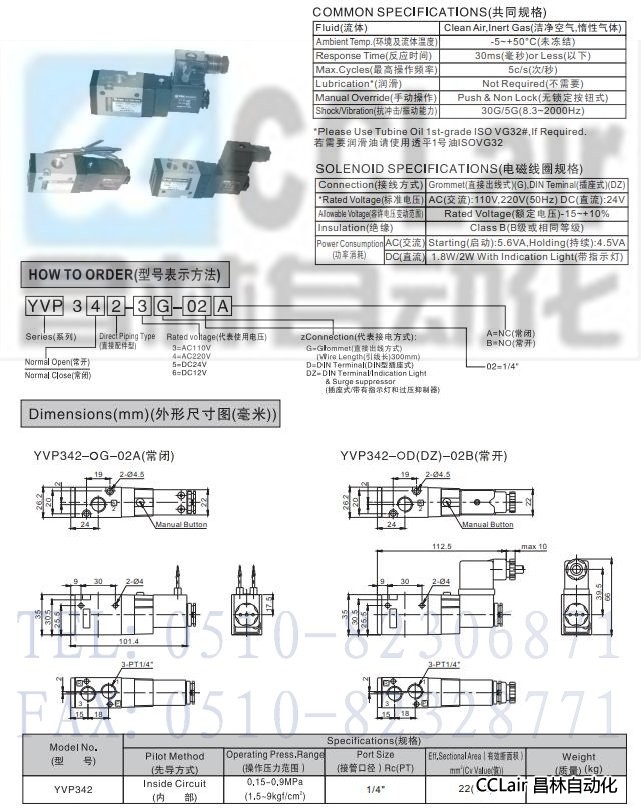 YVP342,YVP342-3G-02A,YVP342-4D-02B,3通先导型电磁阀