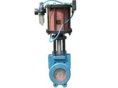 该系列气动闸板阀是通过改变活塞缸进气方向控制闸板提起 (开)和下降(关)。当气动元件向活塞缸下腔进气时,推动活塞上移。使连杆带动闸板一起上移,开启阀口。反之,活塞缸上腔进气,闸板下移使阀口关闭