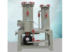 双塔式过滤机应用于电镀、表面处理、金属精饰、PCB蚀刻设备、制药环保等,其主要作用是过滤化学溶液,能去除这些溶液中的不溶性颗粒杂质。其主要型号有KLX-204、KLX-208、KLX-212、KLX-218等。