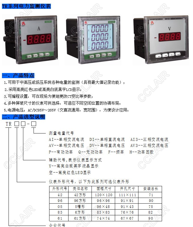 TR42-AI,TR42-DI,TR42-AI3,TR42Y-AI,TR42Y-DI,TR42Y-AI3,TR电力监控仪表