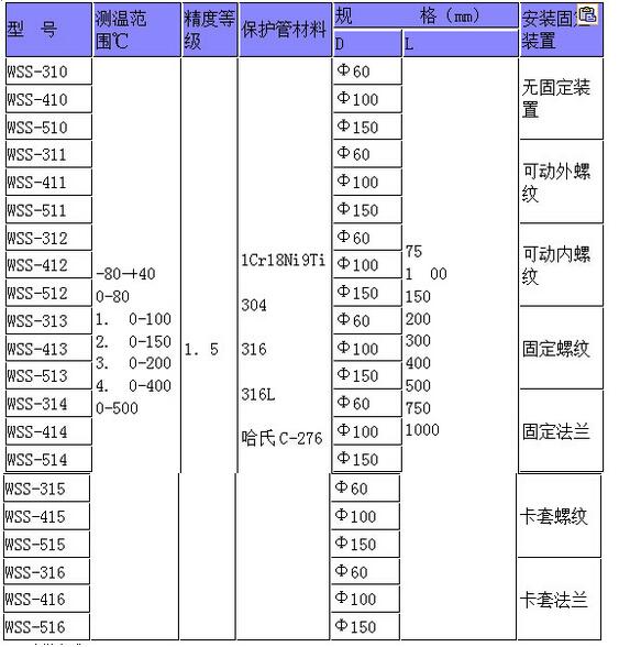 WWSS-314,WSS-414,WSS-514,WWSS-315,WSS-415,WSS-515,WWSS-316,WSS-416,WSS-516,热套式双金属温度计