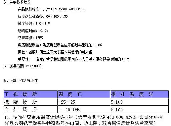 双金属温度计是一种测量中低温度的现场检测仪表。可以直接测量各种生产过程中的-80℃-+500℃范围内液体蒸汽和气体介质温度