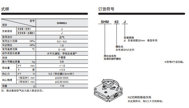 SHM62J,标准机械手模块微型系列--柔性模块NZ式样