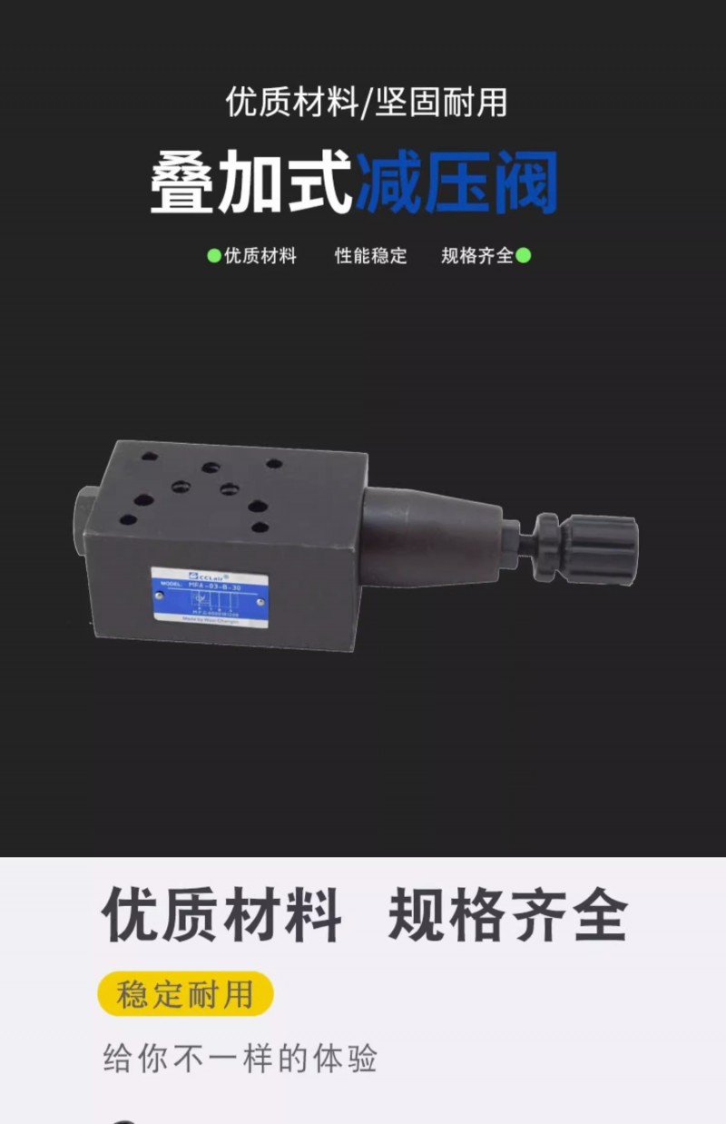 各加阀可适用于各种工业液压系统,如注塑机液压系统,数控机床液压系统,冶金设备液压系统等。督加式减压阀是一种插装式设计的减压阔,它提供的液压回路紧凑、成本低、消除了与连管回路,维修简单,不需要把阀从备加总成上拆下就能接近工作零件。