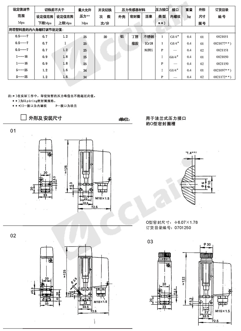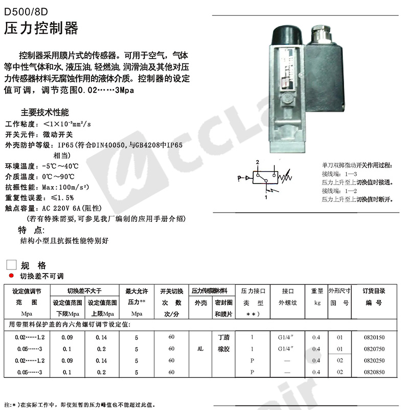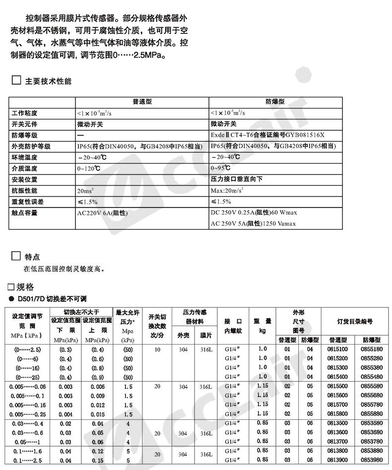 0821051 G1/4,0821077 G1/4,0821050 G1/4,压力控制器 D505/8D切换差不可调