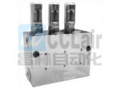 该型分配器适用于公称压力为40MPa的双线式干油集中润滑系统中,在两条供油主管交替的供油压力作用下,直接由供油压力控制活塞动作给油,完成向润滑点定量分配润滑脂的功能。