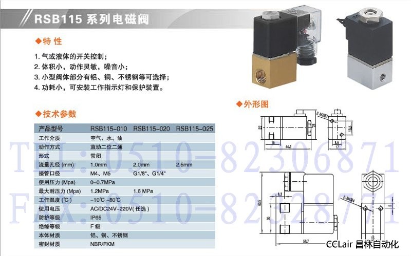 RSB115-010,RSB115-020,RSB115-025,直动二位二通电磁阀