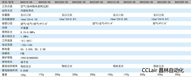 质为经过过滤干燥的清洁空气、工作压力为0.15~0.8MPa。N4V200系列电磁阀广泛应用于气动系统中,