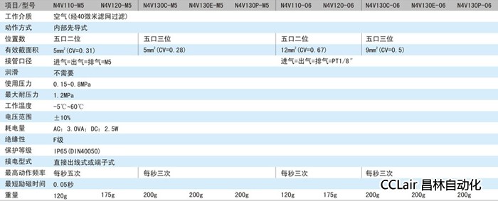 质为经过过滤干燥的清洁空气、工作压力为0.15~0.8MPa。N4V100系列电磁阀广泛应用于气动系统中,