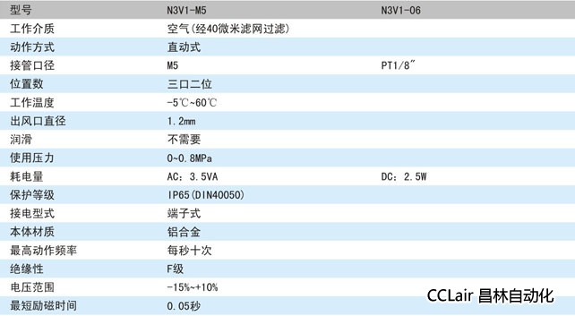 为经过过滤干燥的清洁空气、工作压力为0~0.8MPa。N3V1系列电磁阀广泛应用于气动系统中,用来控