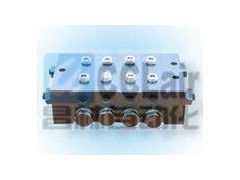 DV703型、DV713型片式递进分配器 采用液压递进分油原理,它由稀油或油脂润滑输送的压力油,使分配器内的柱塞顺序地产生递进往复运动,将油液强制,定量顺序地输送至各润滑点。 DV713型每孔额定给油量分别为0.07,0.16,0.23,0.32mL/循环。 DV703型每孔额定给油量分别为0.5,1.2,2.0,mL/循环。