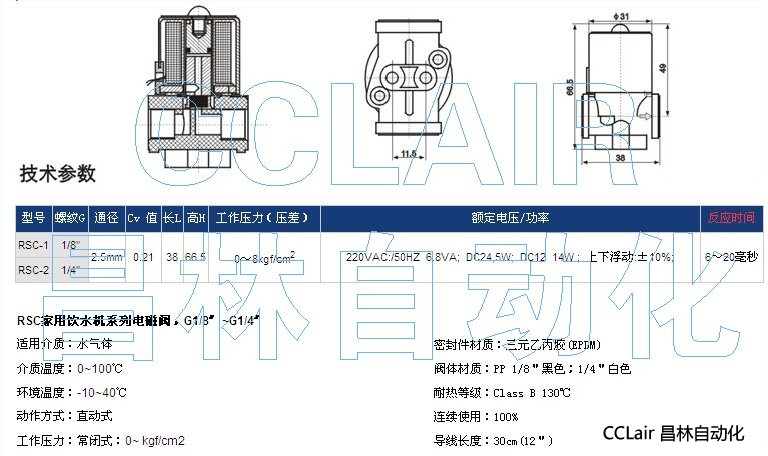 RSC-1,RSC-2,家用饮水机电磁阀,G1/8〞~G1/4〞
