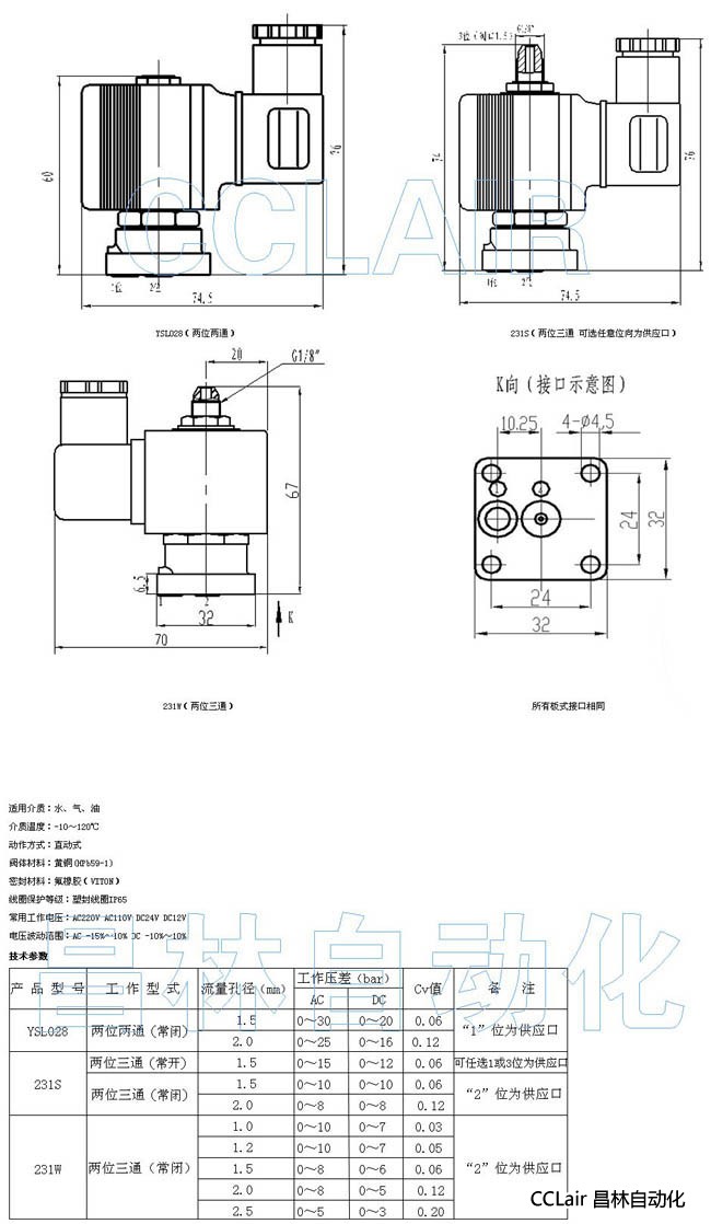 YSL028,231S,231W,集板气、液电磁阀