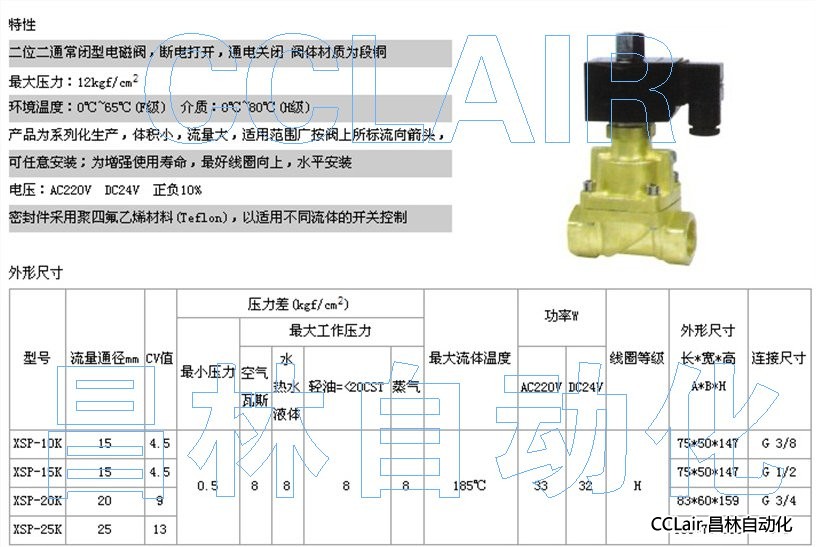 XSP-10K,XSP-15K,XSP-20K,XSP-25K,铜电磁阀(常开型)