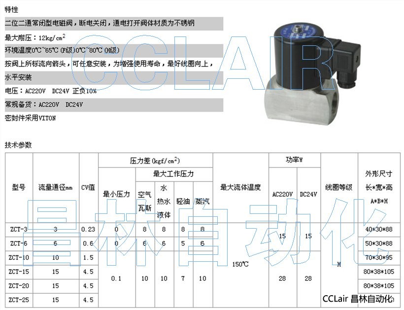 ZCT-3,ZCT-6,ZCT-10,ZCT-15,ZCT-20,ZCT-25,不锈钢电磁阀