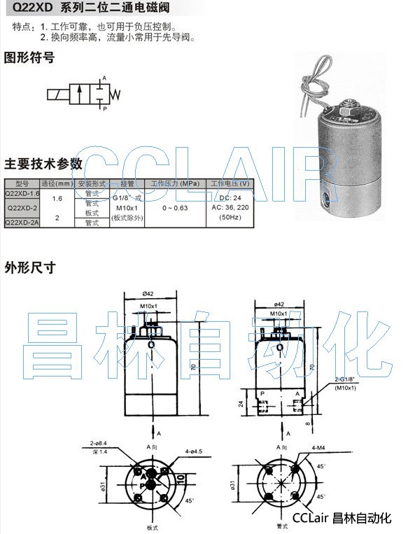 Q22XD-1.6,Q22XD-2,Q22XD-2A,二位二通电磁阀
