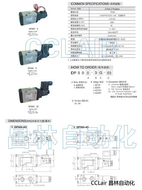 DP500-1G,DP500-2G,DP500-3G,DP500-4G,3通先导型电磁阀