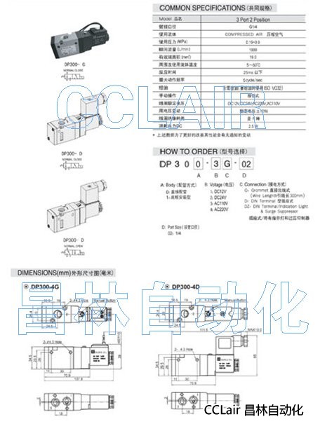 DP300-1G,DP300-2G,DP300-3G,DP300-4G,3通直动型电磁阀