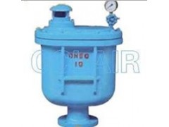 CARX复合式排气阀阀体为圆桶状,阀门内件包括不锈钢浮球、杠杆及阀瓣。本阀安装在泵出口处或配水管线中,用来排除集积在管中的空气,以提高管线及水泵的使用效率,当管内一旦产生负压时,此阀迅速吸入外界空气,以防止管线因负压而损坏。当管内开始注水时,阀瓣处在开启的位置,进行大量排气,当空气排完时,阀内充满水,浮球上升并带动阀瓣关闭,停止排气,当管内水正常输送时,如有少量空气聚集在阀内到相当的程度,阀内水位下降,此时空气由小孔排出。当水泵停止时,管内水流空或遇管内产生负压,此时塞头迅速开启,吸入空气,确保管线安全。介质温度:0-80℃。