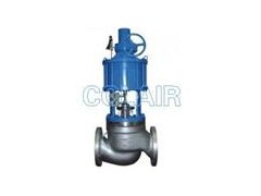 当500kPa的信号压力通入气缸,推动活塞,推杆下移,实现气动切断阀的开(DN25~200),闭(DN10~100)。反之当电磁阀换向,气缸上方 压力排空,执行机构上方的弹簧将活塞及推杆提起,实现气动切断阀的闭(DN25~200),开(DN20~100)。手轮机构用在当气源发生故障或信号压 力减少阀芯不能正常移动的场合。气动操作前,应先将手轮按反时针方向转到不动为止。