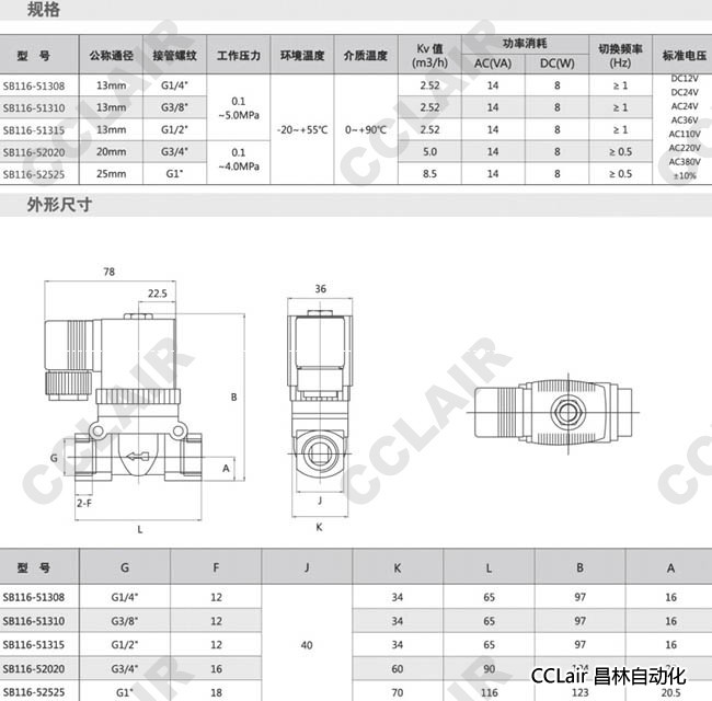 SB116-51308,SB116-51210,SB116-51315,SB116-52020,SB116-52525,二位二通电磁阀