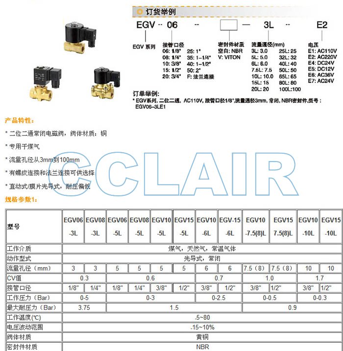 EGV06-3L,EGV08-5L,EGV10-6L,EGV15-7.5L,EGV20-10L,EGV06-15L,天然气专用电磁阀