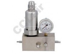 蓄能器气体安全阀装于蓄能器气体部分,此型安全阀块集安全、充气、放气、检测气压为一体的新颖产品,尤其是当蓄能气的气体升高时,超过了其最高工作压力(安全阀设定的压力)时,安全阀便会自动排气,从而保护了蓄能器的安全。