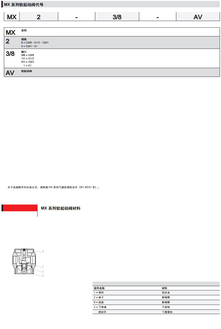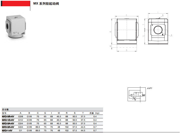 MX2-3/8-AV,MX2-1/2-AV,MX2-3/4-AV,MX3-3/4-AV,camozzi软起动阀
