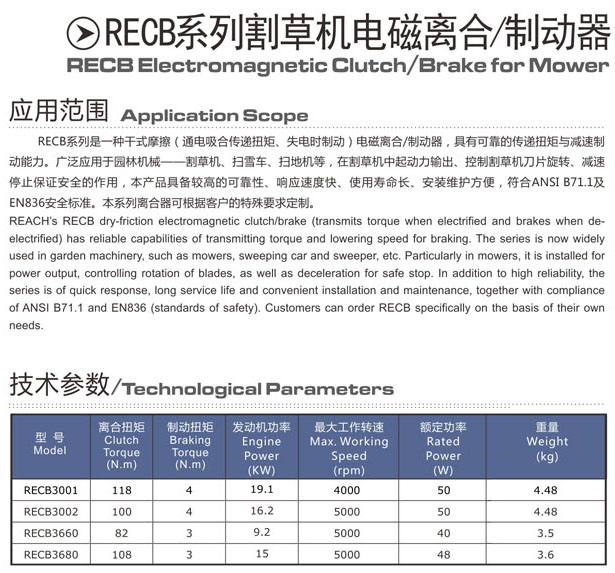 RECB3001,RECB3002,RECB3660,RECB3680,割草机电磁离合制动器