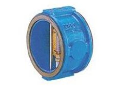 双瓣式止回阀可安装于水泵出口处,能避免产生水锤、水击声和破坏性冲击,达到防止逆流和保护设备的目的。FS-074对夹式止回阀采用流体型设计,水头损失较小;内部弹簧可加速封闭,达到静音效果;金属对金属确保密封的可靠性;安装空间小。广泛用于给排水、消防、建筑、暖通系统。